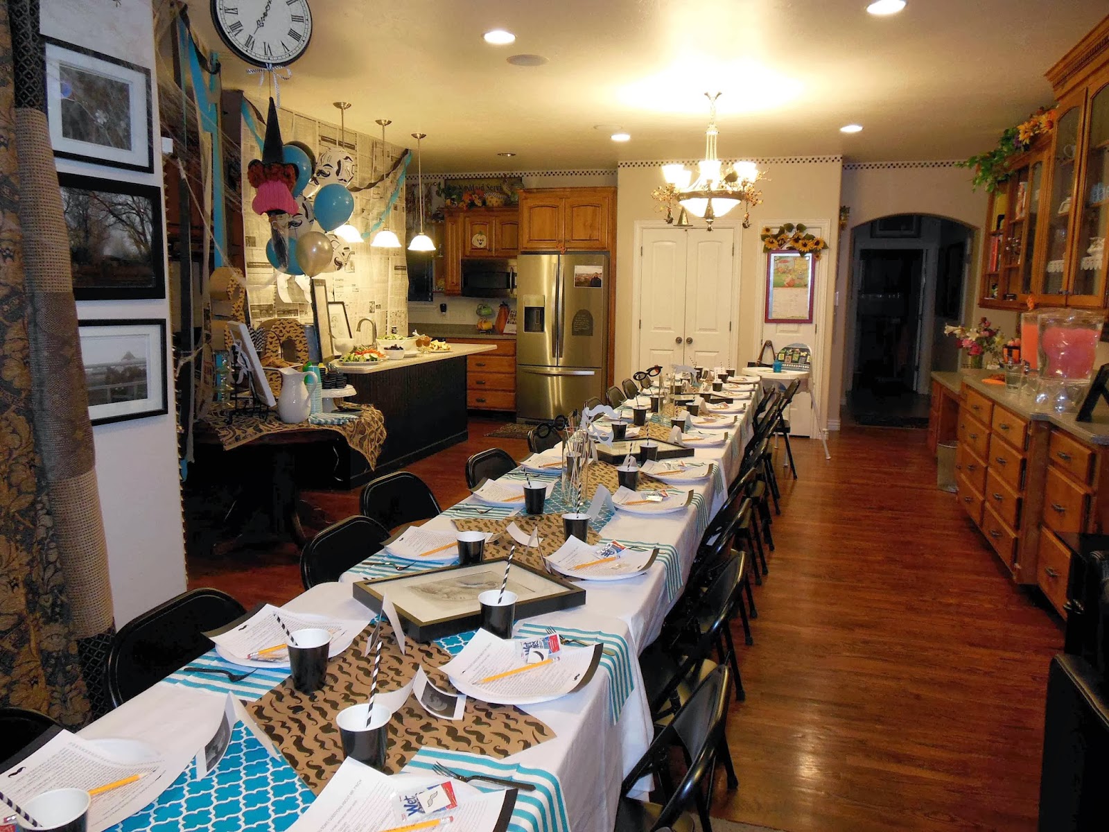 Place Settings included guest picture with whiskers, 30 questions about the birthday boy and mustache tattoos for fingers and faces.